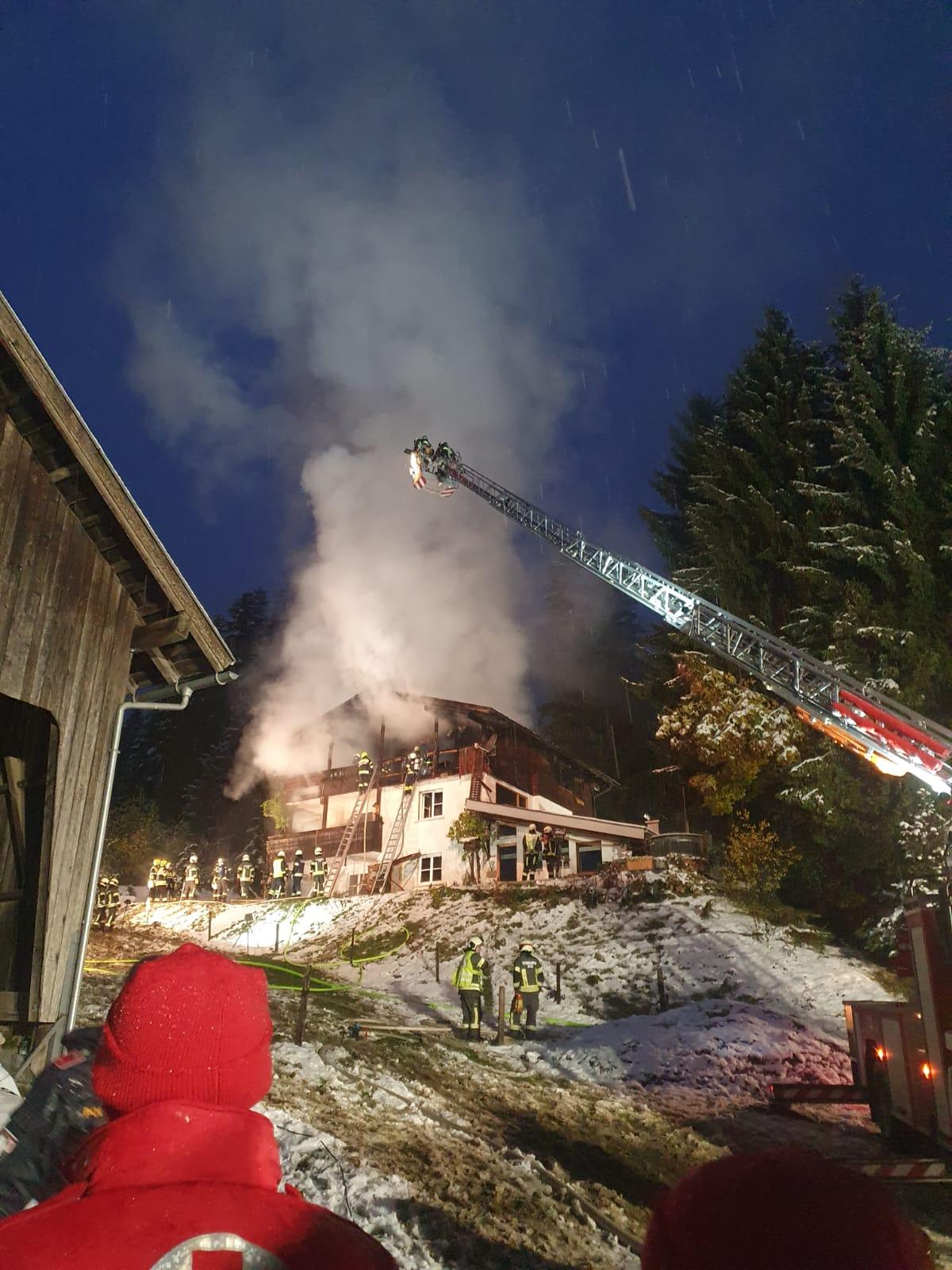 Am 17.11.2023 um 15:48 Uhr wurde die Feuerwehr Alberschwende zu einem Kaminbrand bei einem Ferienhaus in Alberschwende gerufen. Kurze Zeit darauf entwickelte sich das Feuer zu einem Dachstuhlbrand und weitere Einsatzkräfte der Feuerwehren Müselbach, Egg, Großdorf, Andelsbuch, Bildstein und Schwarzenberg wurden alarmiert. Vor Ort waren auch noch Rotes Kreuz, First Responder, Polizei und Notarzt.